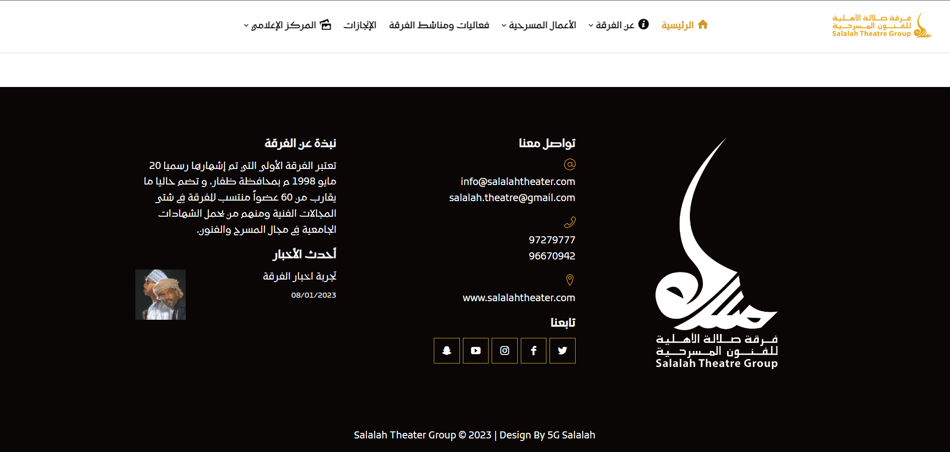 فرقة صلالة الأهلية من أقدم الفرق المسرحية في محافظة ظفار، صممنا الموقر وتم تطوير بناءً على توجه الفرقة من حيث الشكل والتوجه بأحدث التقنيات